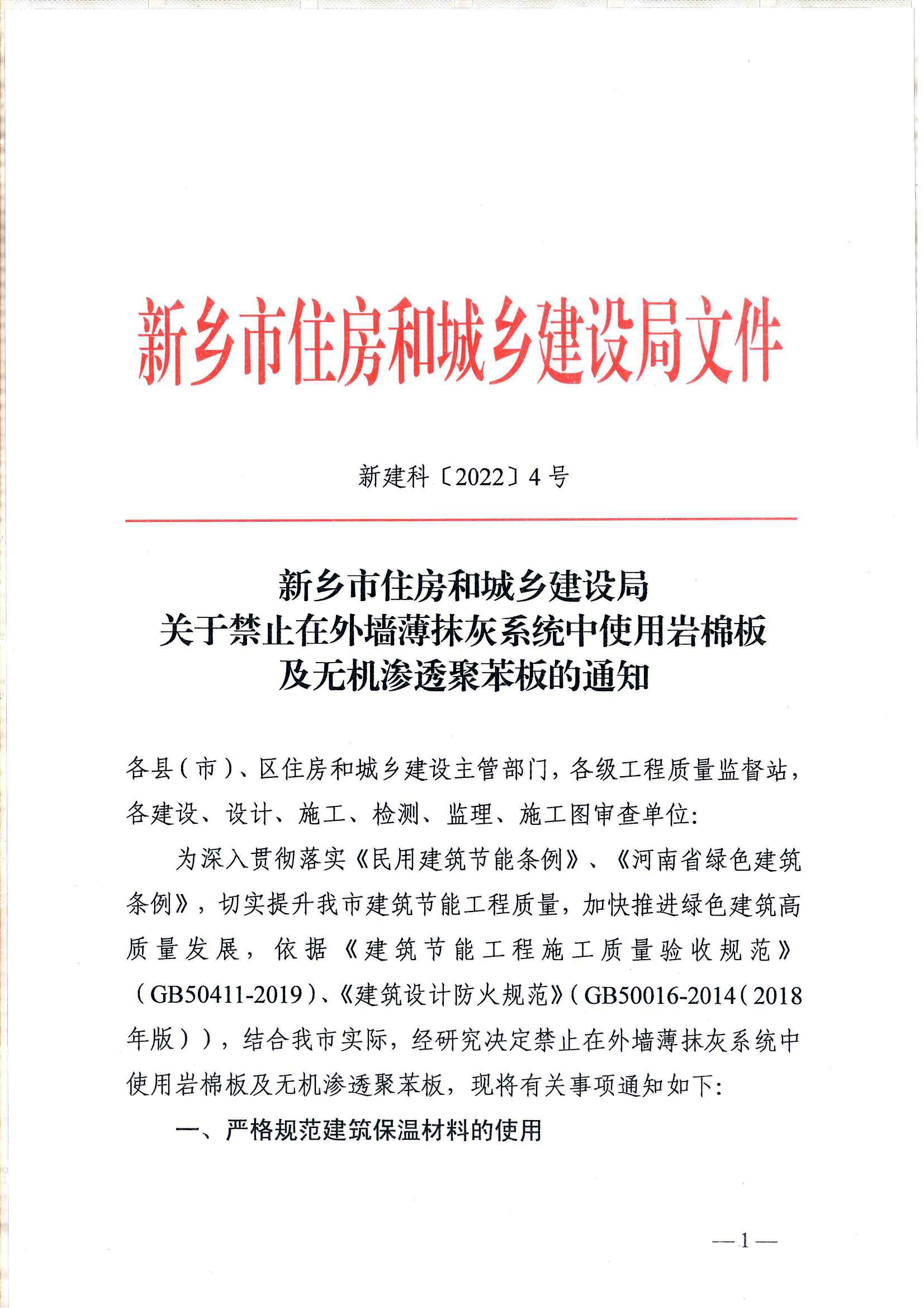 2022年5月20日新鄉(xiāng)市住房和城鄉(xiāng)建設(shè)局發(fā)文《關(guān)于禁止在外墻薄抹灰系統(tǒng)中使用巖棉板和無(wú)機(jī)滲透聚苯板的通知》,新鄉(xiāng)市成為河南省內(nèi)繼開封第二個(gè)明確發(fā)文限制或禁止巖棉在外墻薄抹灰系統(tǒng)中使用的地級(jí)市,此文件除禁止巖棉在外墻薄抹灰系統(tǒng)中使用外,也禁止了采用無(wú)機(jī)滲透工藝所生產(chǎn)的無(wú)機(jī)滲透聚苯板作為A級(jí)保溫材料在外墻薄抹灰系統(tǒng)中的使用。